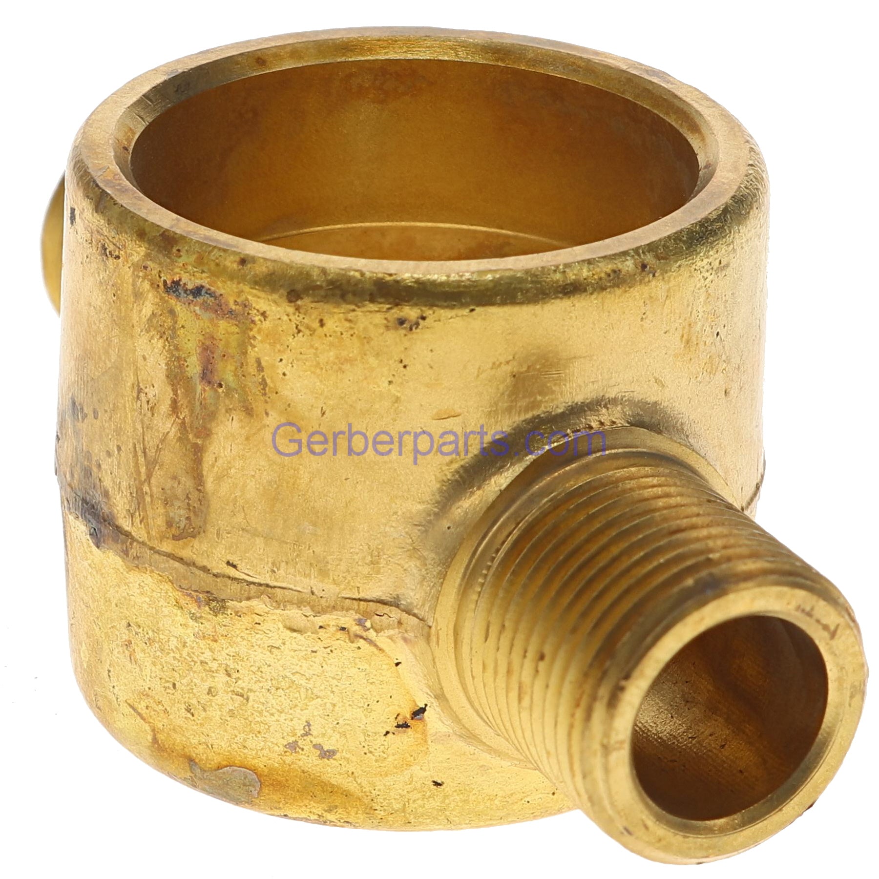 Genuine Gerber A014083N shape adaptor for the spout shank. This piece is designed for the Gerber model D414357. It is a full brass T shaped adapter, with both connection points consisting of male, or external threads.