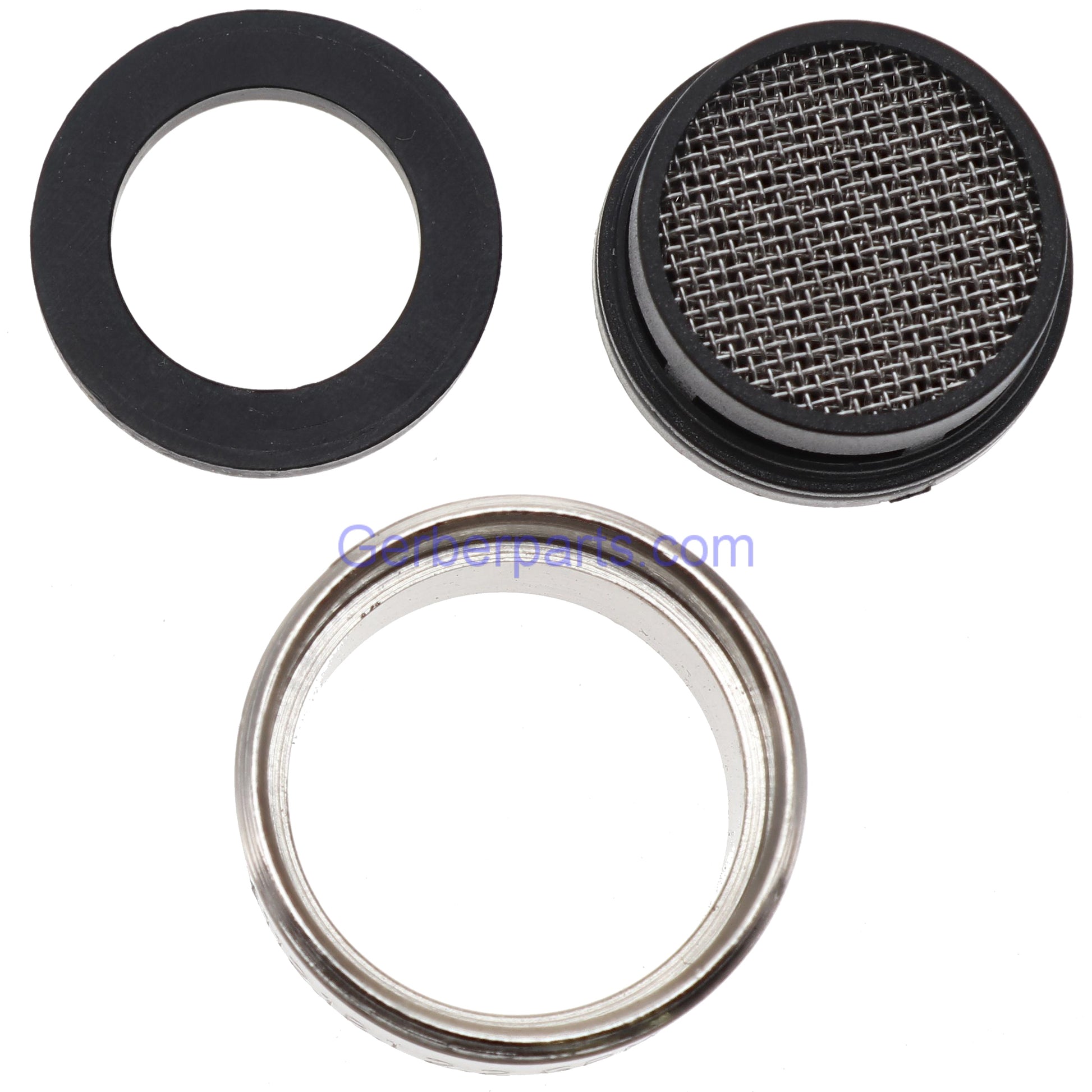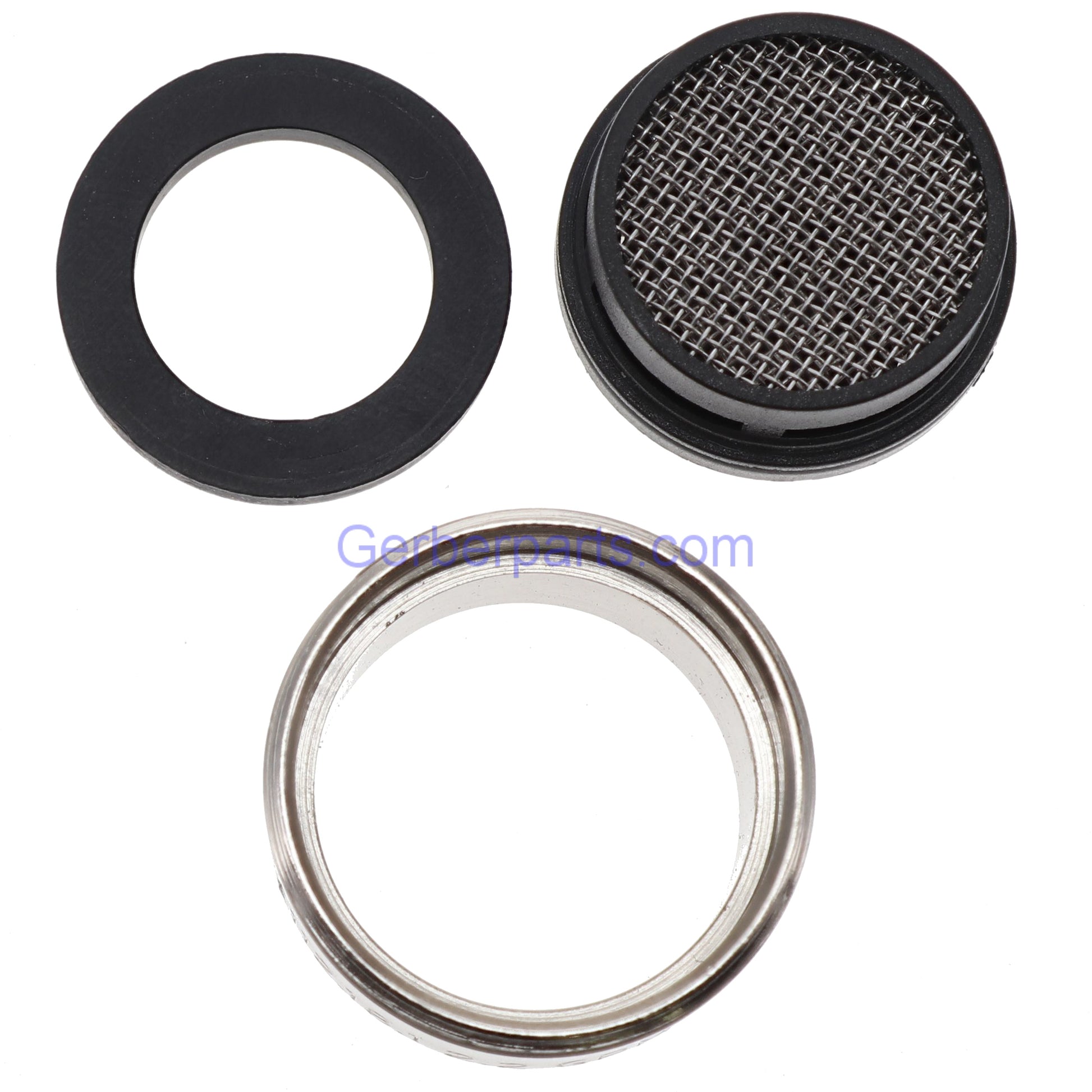 Genuine Gerber A500013NNP aerator with brushed nickel finish. This aerator connects to the faucet by a set of male threads on the metal housing for the aerator.
